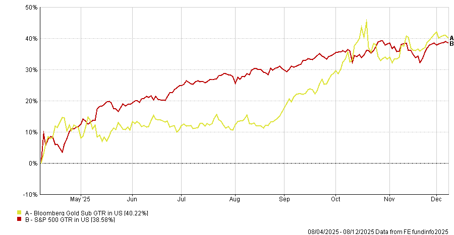 The gold price has risen some 60% year-to-date to trade at $4200 per ounce, while the S&P 500 index has increase about 38% from the lows in April, trading near all-time highs.