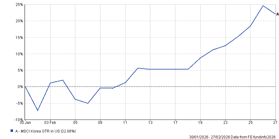 Below are the best performing funds available for distribution in either Hong Kong or Singapore in US dollar terms, for the calendar month ending February 2026, according to data compiled from FE Fundinfo.